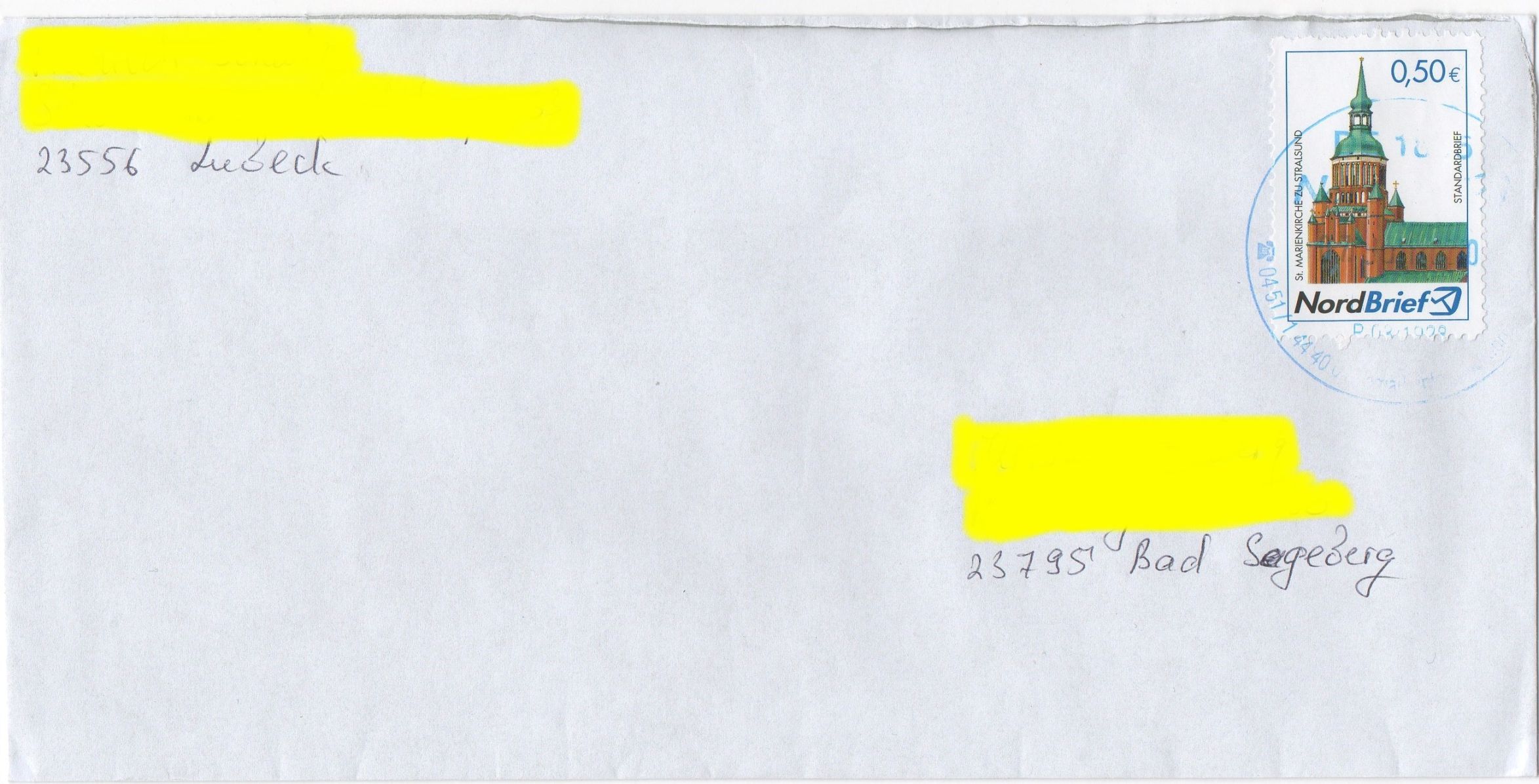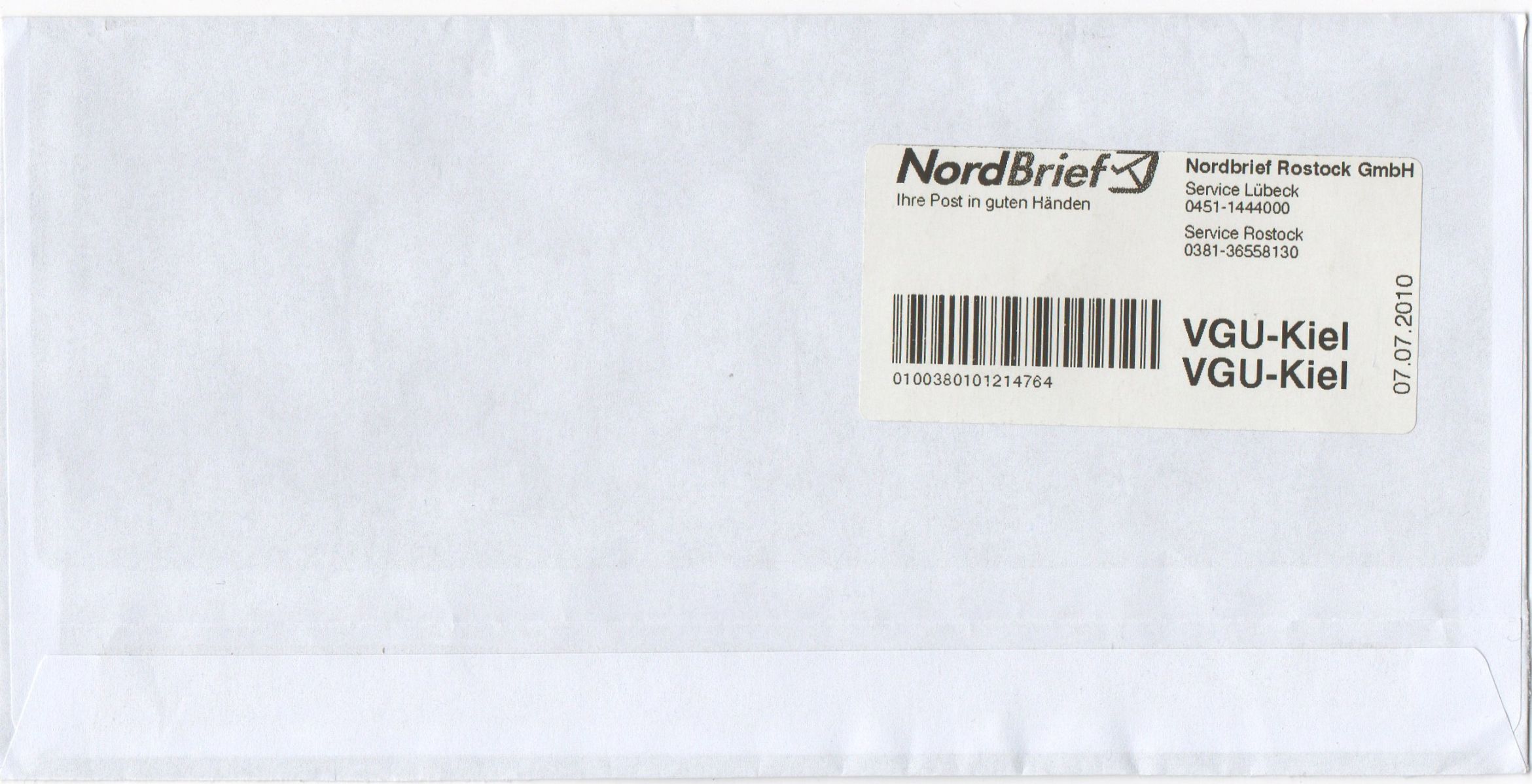 Gestern hatte ich mal wieder einen NordBrief erhalten - es ist die Ost-Version mit den Marken, die eine Zähnung in der Qualität der AM-Post-Marken von 1945 haben. Dass die das im Jahr 2010 nicht besser hinbekommen ist schon mehr als merkwürdig! Zuvor hieß das mal "OstseePost" (da war die Zähnung auch schon in dieser minderen Qualität!) und hat seit kurzem auch den hier üblichen Namen NordBrief angenommen. Die Portostufen sind offenbar einheitlich 40, 50, 80, 130 und 200 Cent für Postkarte, Standardbrief, Kompaktbrief, Großbrief und Maxibrief!