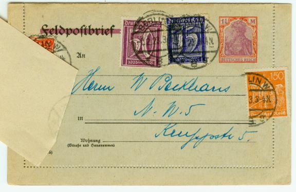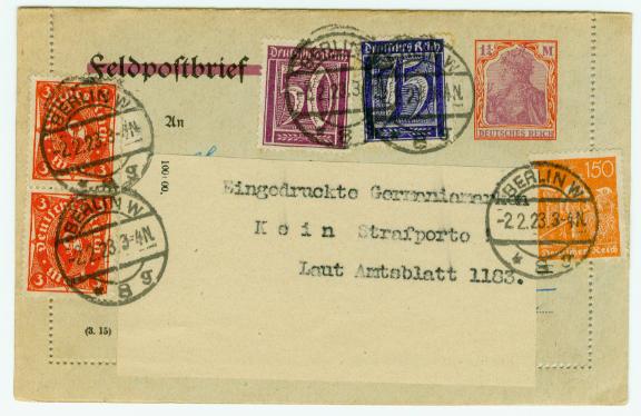 Zeige hier ein Postkarte oder ein Drucksache. Sendet in Berlin am 2.2.1923.