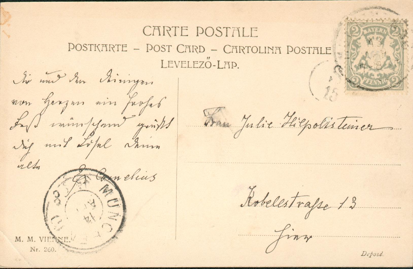 Anhand der Adresse Landwehrstraße (in der Ludwigsvorstadt) müsste doch der Briefträgerstempel entziffert werden können ?(