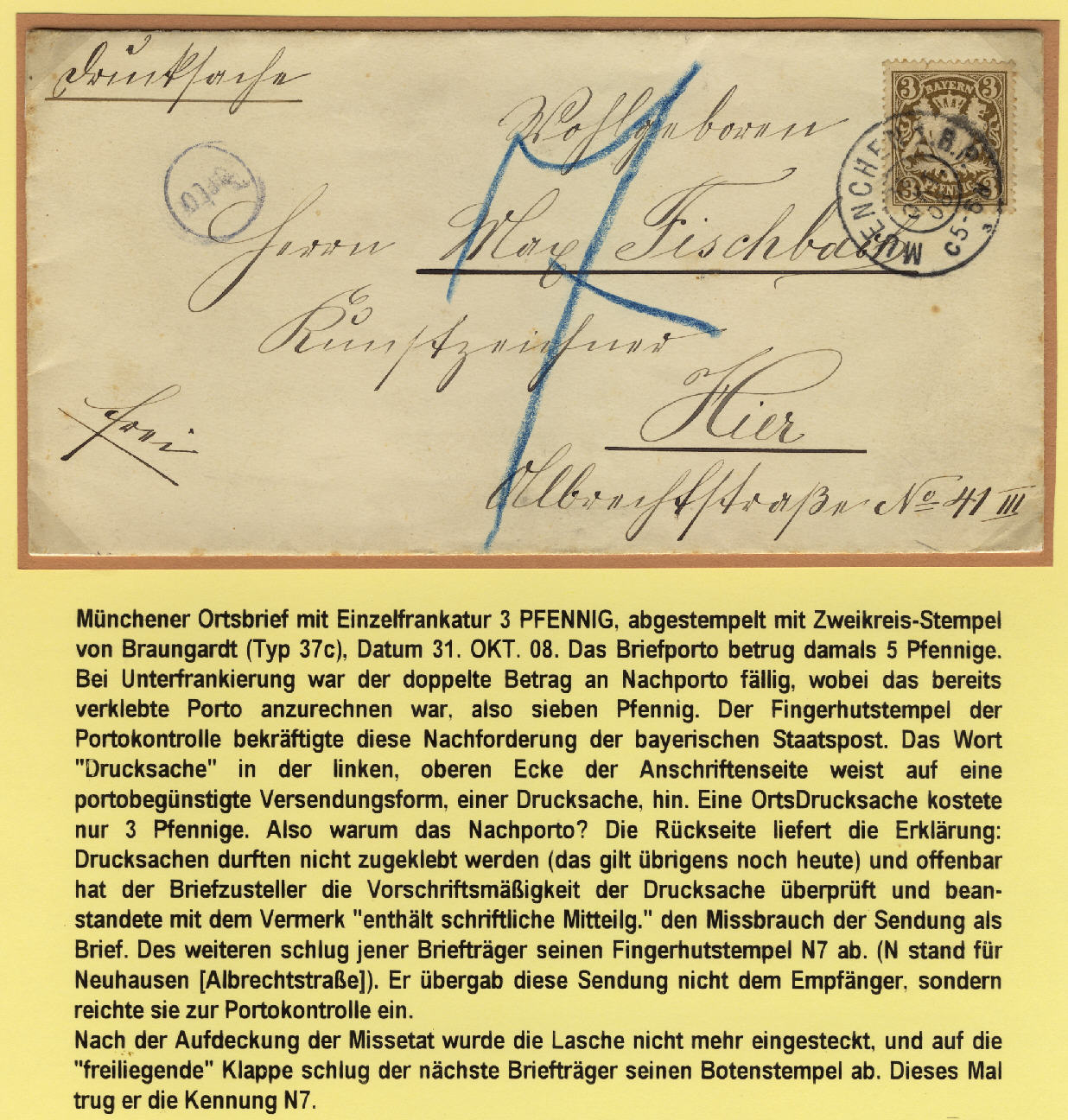 In München geschrieben und dort als Ortskarte vorgesehen - dann aber (Grund ?) nach Heilbrunn mitgenommen und dort als Ortskarte gelaufen. Heilbrunn ist heute noch nicht groß und dann erst damals....