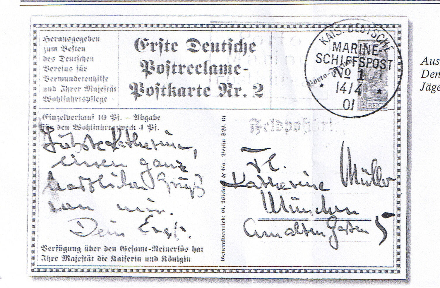1901 auf dem Kreizer "Vineta" wegen Mangels an 5 Pfg. Marken