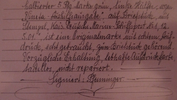 Unter anderem handelt es sich um eine Briefmarke mit einem Prüfungsattest.