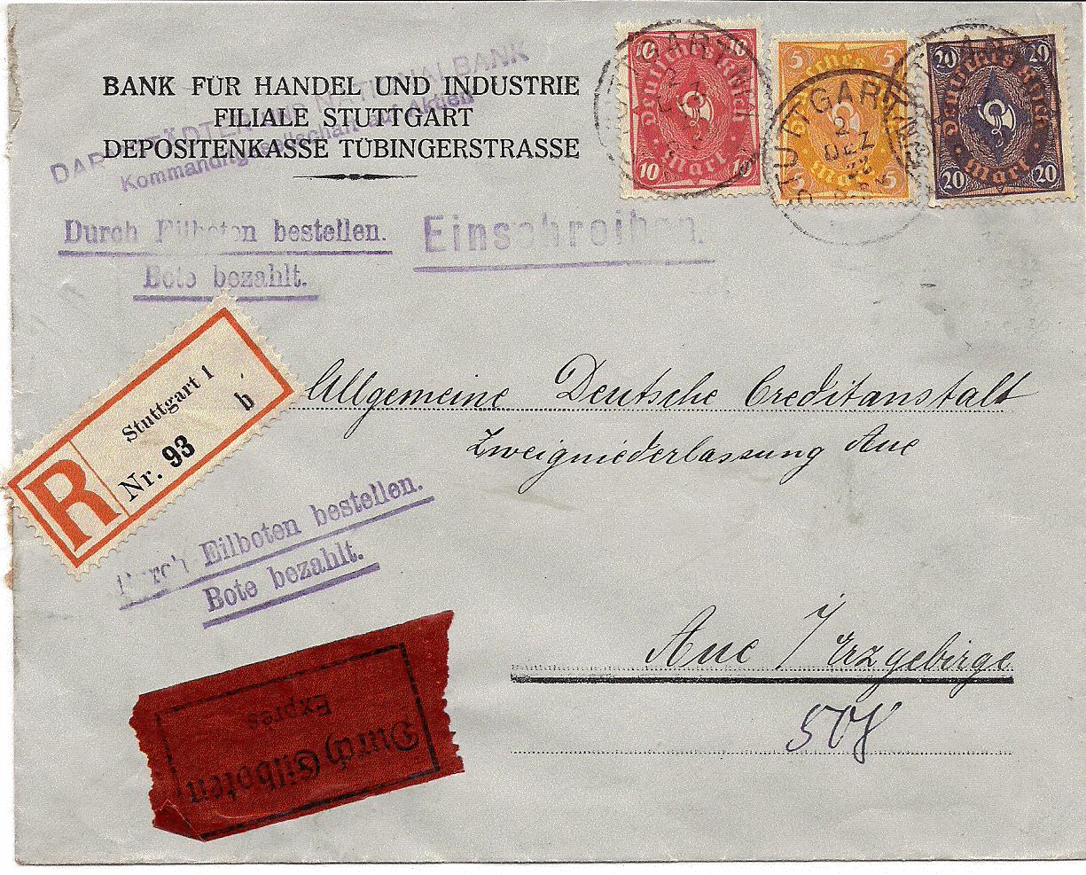 Habe hier ein Einschreiben gegen Rückschein (Reichsdienstangelegenheit) vom Hauptversorgungsamt Würzburg nach Bamberg, wegen zwischenzeitlichen Umzugs nach Erlangen weitergeleitet. Frankiert mit den Dienstmarken Mi.-Nr. 70, 2 x 33 und 30.