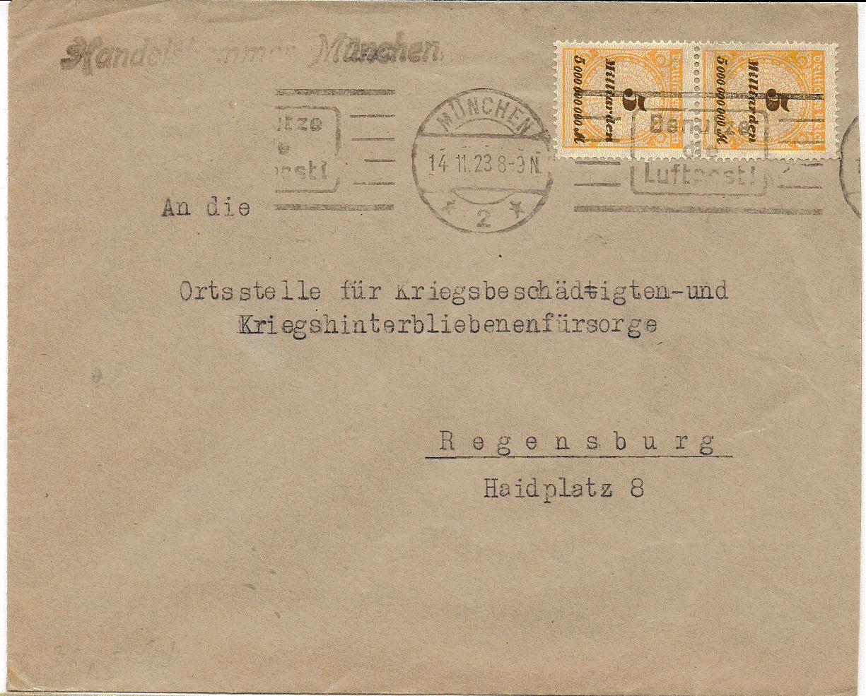 der heutige Beleg ist ein Eilbotenbrief des Kolberger Textilkaufhauses Gustav Zeeck nach Plauen vom 19.10.23 (also Letzttag der PP20).