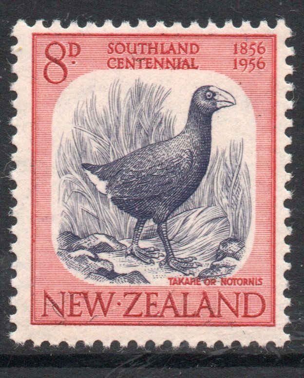Der Takahe, ein neuseeländischer Vogel, der bereits 1898 als ausgestorben erklärt wurde, wurde seit 1948, als doch noch eine kleine Population entdeckt wurde, in Gefangenschaft gezüchtet und kürzlich wieder ausgewildert. Nicht nur Neuseeland, auch andere Länder zeigen den seltenen Vogel auf Briefmarken: