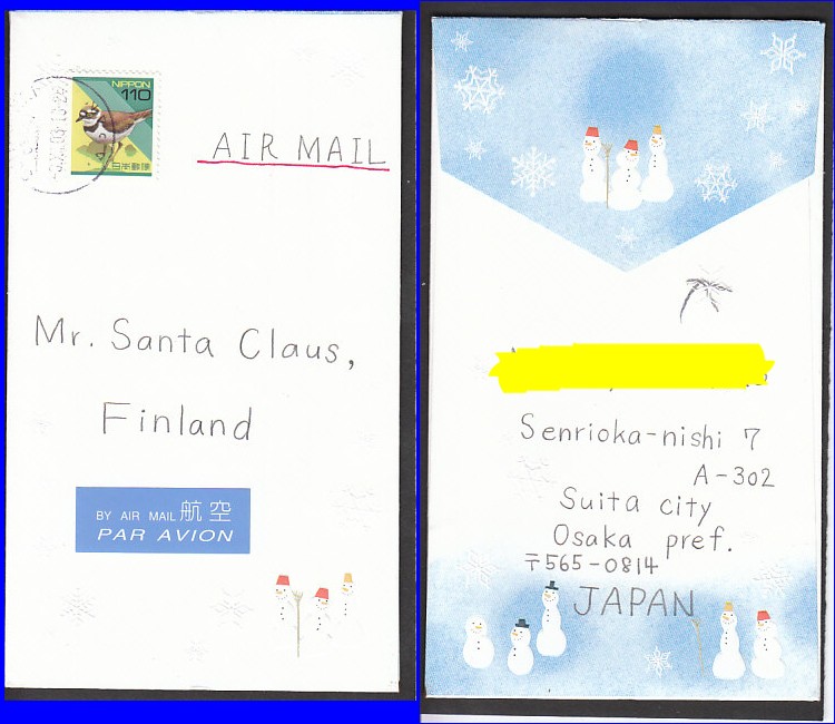 Schöner Beleg. Ich habe bisher nur Briefe aus Rovaniemi vom Weihnachtsmann gesehen, aber nicht Briefe für ihn. -