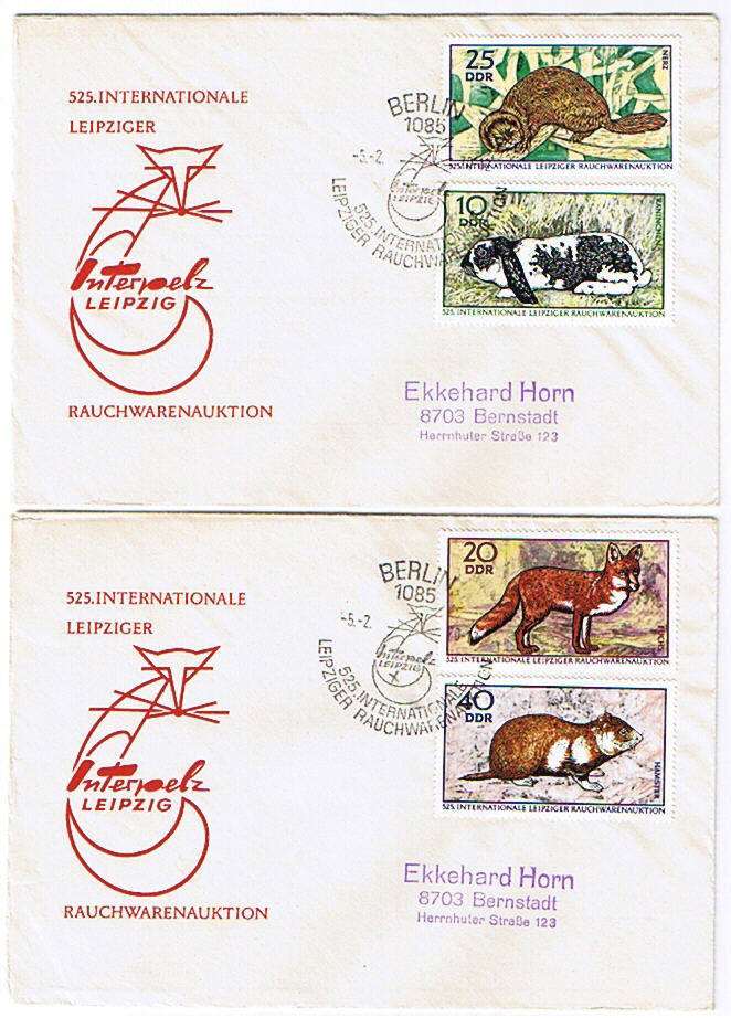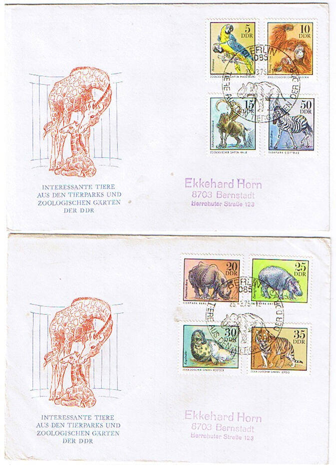 Satz - Zootiere DDR Nr 2030-37 auf 2 Briefen -
