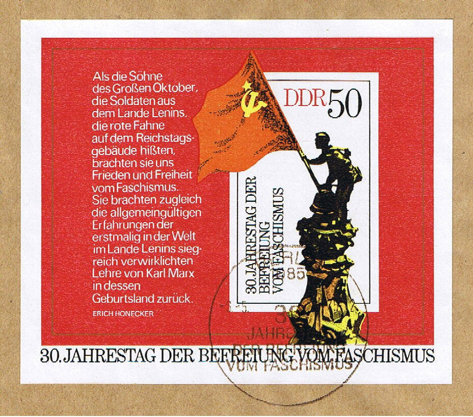 Ob uns die Russen, oder sonstwer von diesem Tyrannen befreit haben ist mir letztendlich egal, die Suppe löffeln wir ja heute noch aus, aber wir haben unsere Ruhe und können Briefmarken sammeln ( auch solche Motive ) Ich glaube bei DR in der DDR sah es anders aus ;)