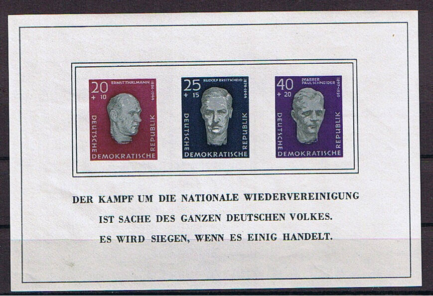 Aus der gleichen Serie "20. Jahrestag der Befreiung vom Faschismus" hier die Marke zu 70 Pfg. Auch hier hat der Künstler sich seine Freiheit genommen, die historische Begebenheit "anzupassen - ganz im Sinne seines Auftragsgebers.