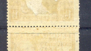 Im Michel wird es nur oben in der Kopfzeile erwähnt, das die Marke auch in Rollenform gibt. Die Marke wurde in Bögen 6*10 Marken gedruckt. Um Rollenmarken zu erhalten, hat man Bögen verwendet und die Enden "verklebt". Diese zusammengesetzte Pärchen nennt man Coil join. Bei diesem Exemplar, erkennt man links den Schnitt des Rollengebers.