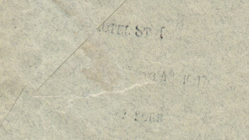 Rückseitig sehr schwacher Hotel-Ankunftsstempel des St. Regis in New York.