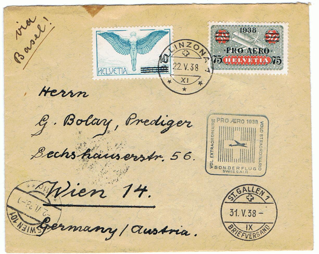 Ein schöner Sonderflug der Swissair, mit schwer nachzuvollziehendem Streckenverlauf. Zwölf Tage von Bellinzona via Basel und Sankt Gallen nach Wien.