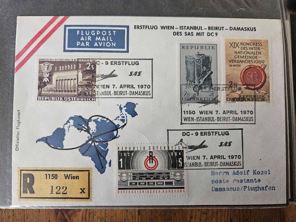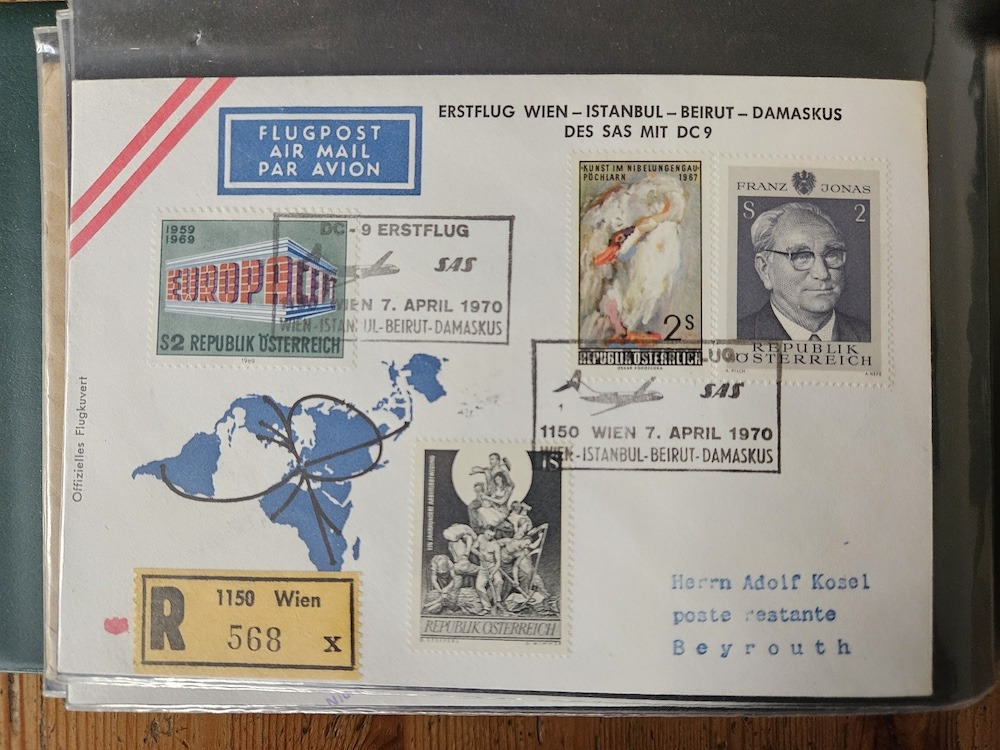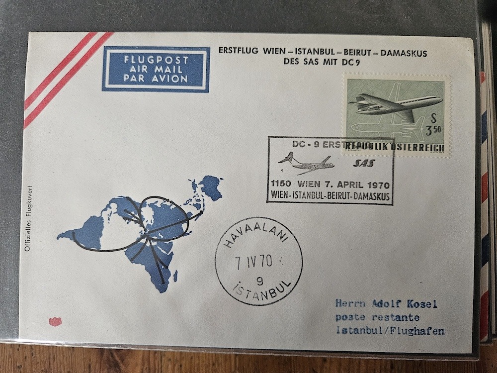 Drei Belege zum SAS Erstflug Wien-Istanbul-Beirut-Damaskus.