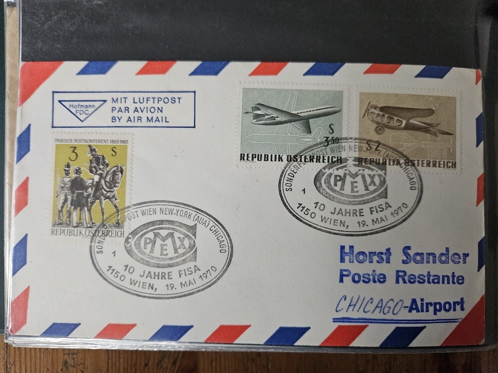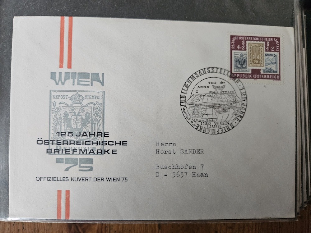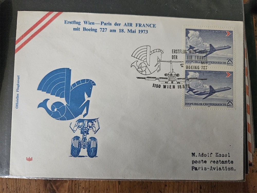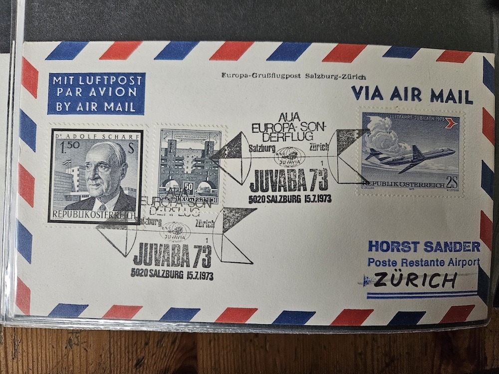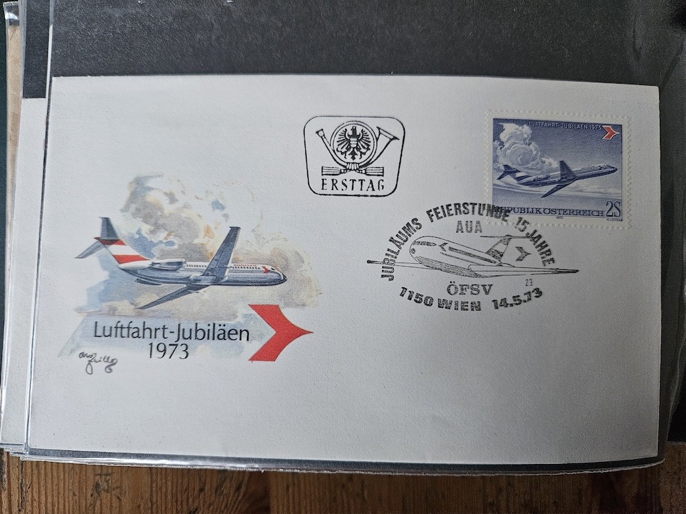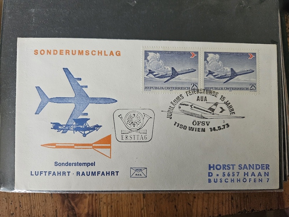 Wie schon bei der Ballonpost geschrieben, bietet tomm2015 ja am Marktplatz viele schöne Belege an, darunter so manche die unter Flugpost passen und insbesondere in dieses Thema der Erst- und Sonderflüge. Damit sie dem Forum bildlich erhalten bleiben, hat er mir angeboten, sie auch hier einzustellen. Ich werde das nach und nach tun und beginne mit Belegen zum 30. Jahrestag der Wiederaufnahme des Flugverkehrs ab Österreich. Gezeigt werden zwei Belege mit dem Sonderstempel zur Jubiläumsausstellung sowie Belege der Flüge Wien-Brüssel und Wien-Prag.