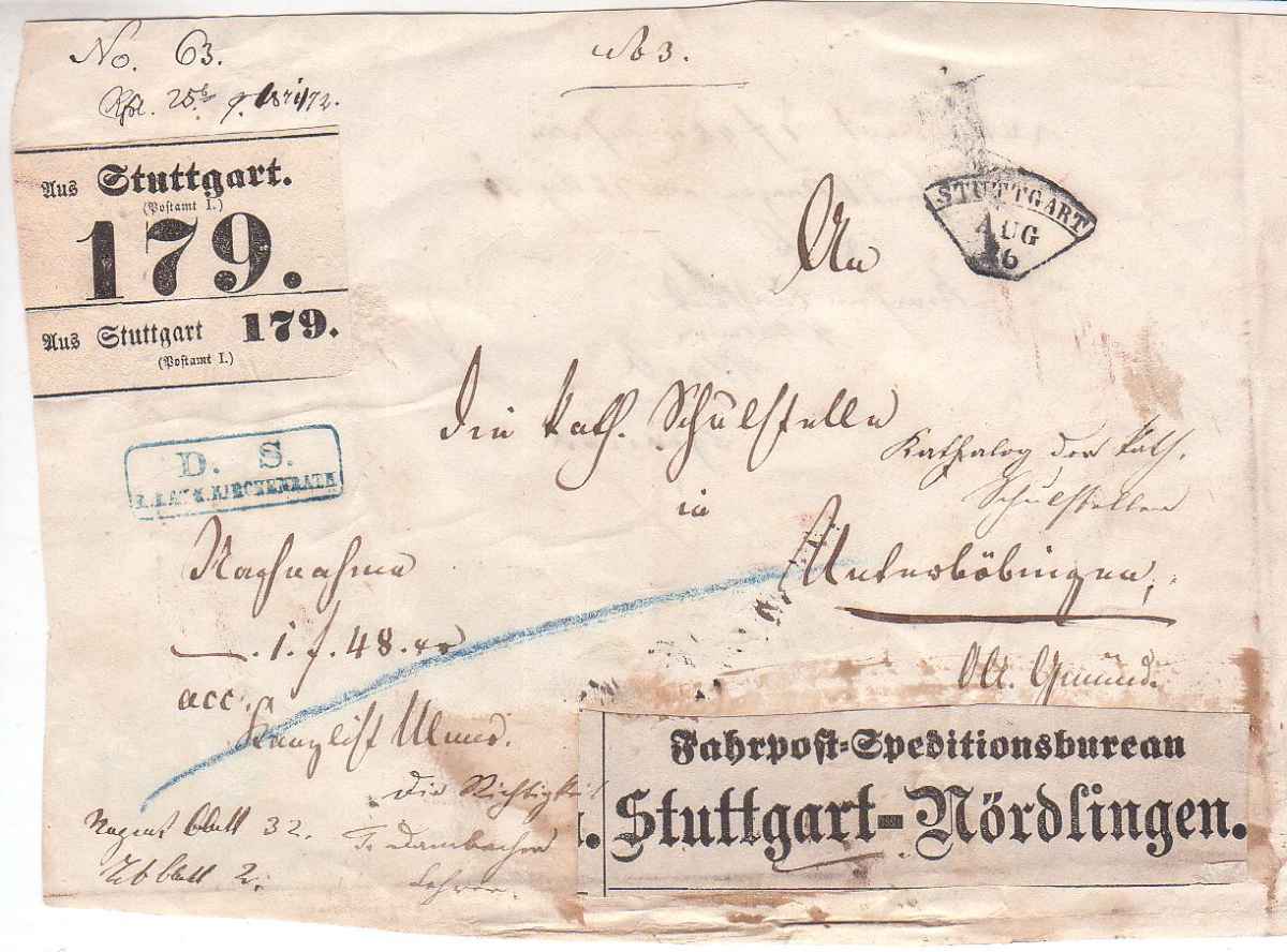 Empfänger: Sr. Hochwohlgeborener Herr Hofdomänrath von Blezsing in Stuttgart