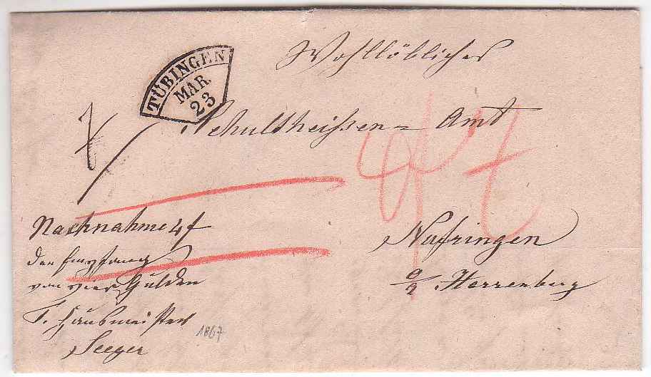 Nachnahmebrief über 6 Kreuzer von Bühlertann