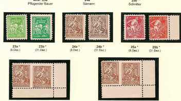 Bevor dieser Thread komplett in den Untiefen des Forums verschwindet, stelle ich hier einmal alle sechs Hauptfarben der Serie Mi.Nr. 23 - 25 vor.