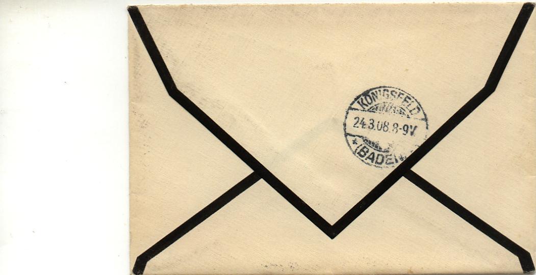 Hier auch noch schnell ein Exemplar vom gestrigen Vereinstausch v.23.03.1908 - hier inspirierte mich der Empfänger-Name zum Kauf.