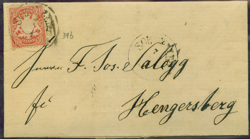 Das Wasserzeichen kann ich zwar nicht erkennen, aber ich gehe mal davon aus dass es sich nicht um eine spät verwendete #39 handelt sondern um eine #49 die es zum Zeitpunkt der Briefaufgabe ja schon seit über 2 Jahren gab.