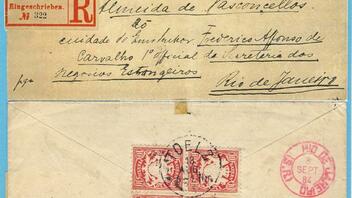 Brasilien war seit dem 1.4.1879 Mitglied im Weltpostverein, daher 20 Pfg. Standardtarif für die 1. Gewichtsstufe plus 20 Pfg. Einschreibegebühr = 40 Pfg. und die noch brav im Viererblock verklebt... :) :).