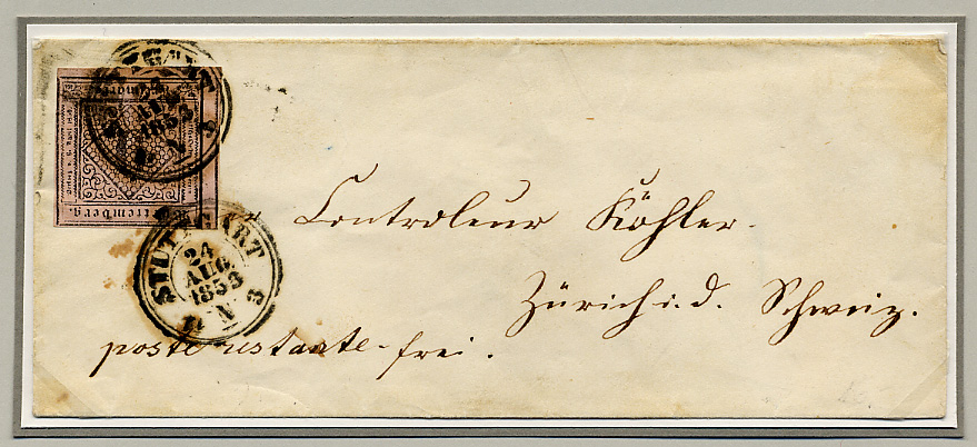 Da er glaubte, ein Weiterfranko von 6 Kr. der Schweiz vergüten zu müssen, notierte er diese hinten, indem er sie vom Wert der Marke abzog, so dass Bayern nur noch 3 Kr. verblieben. Das war zwar zuwenig, ihm aber egal, Hauptsache er wurde diesen verflixten Problembrief aus dem Briefkasten endlich los. Die Schweiz freute sich über extra 3 Kreuzer, derer es bei besserer geographischer Kenntnisse nicht bedurft hätte.