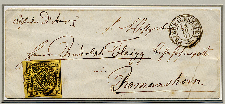 Sowie Brief von Ludwigsburg nach Schoenenwerth-Aarau frankiert mit Nr. 3 + 4