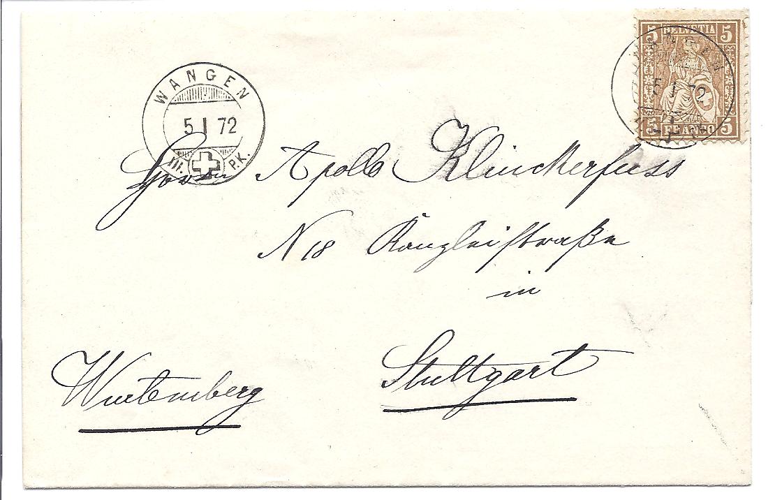 Beginnen will ich mit einer Auslandsdrucksache von Wangen nach Stuttgart. Nicht häufig mit Sitzender Helvetia.