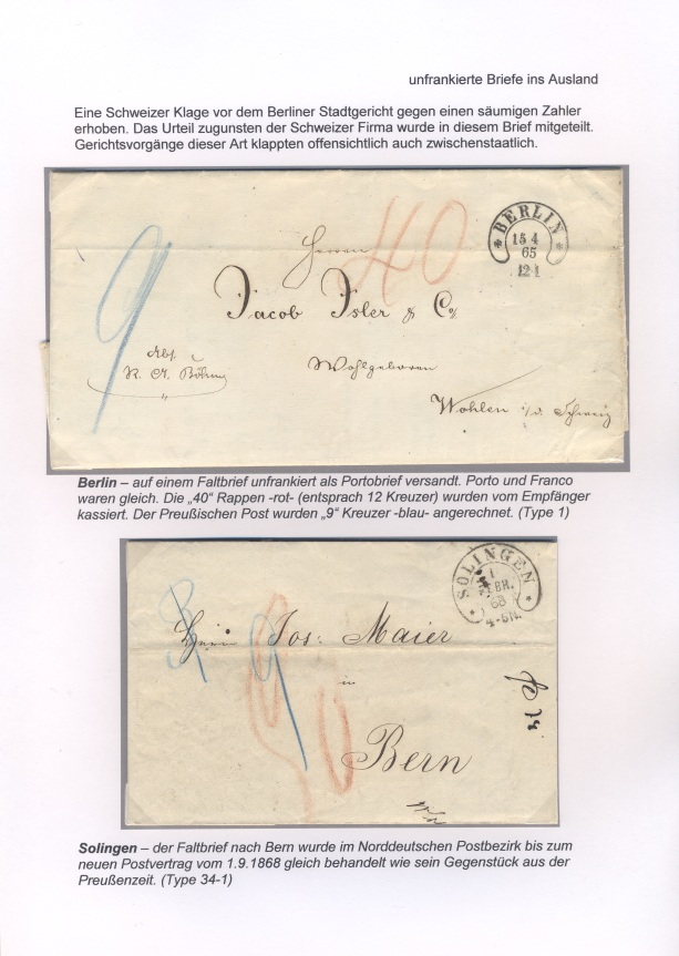 Die Abmachungen der Postverwaltungen Preußens, Bayerns und Badens (teils auch Sachsens) zu Sendungen von und nach der CH waren eindeutig.