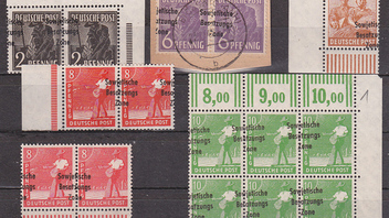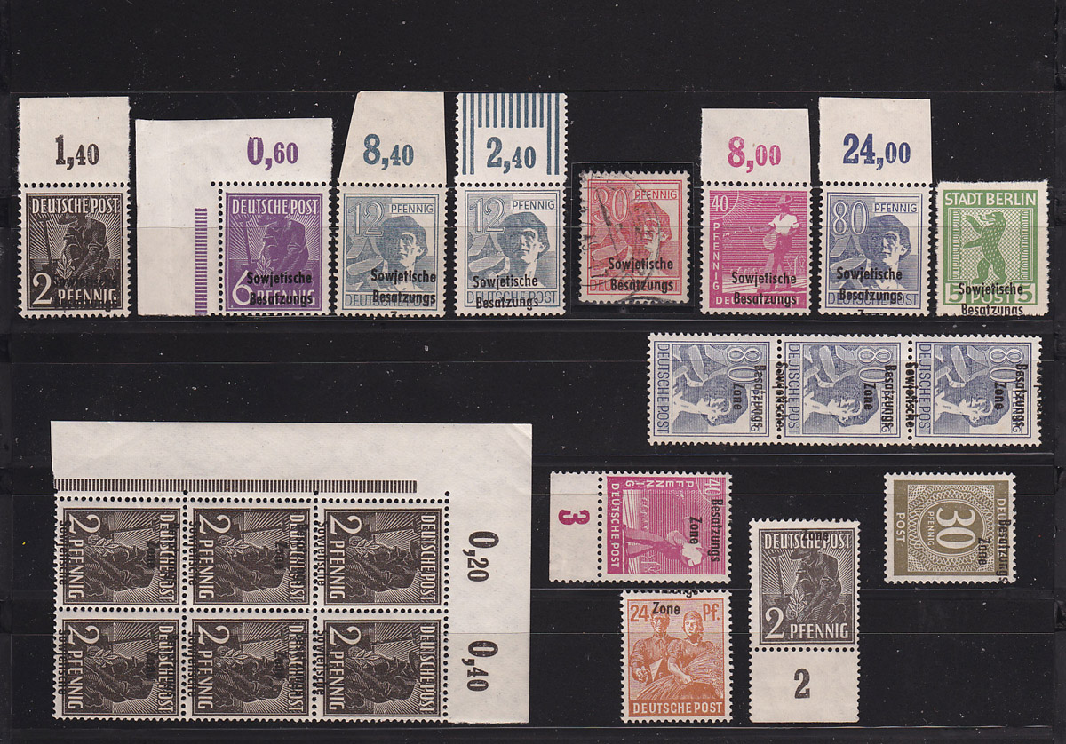 Der Aufdruck "Zone - Sowjetische Besatzungs" ist sehr nett. Besonders wirkungsvoll sind dann natürlich größere Einheiten oder Bogenteile. Ich könnte mir auch vorstellen, daß Randstücke, besonders natürlich Oberrandstücke sehr apart aussehen könnten.