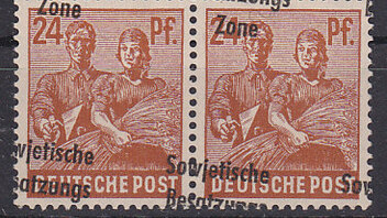dann mache ich mal weiter mit verschobenen Aufdrucken, die nur Fragmente des Textes "Sowjetische Besatzungs Zone" auf der Marke zeigen.