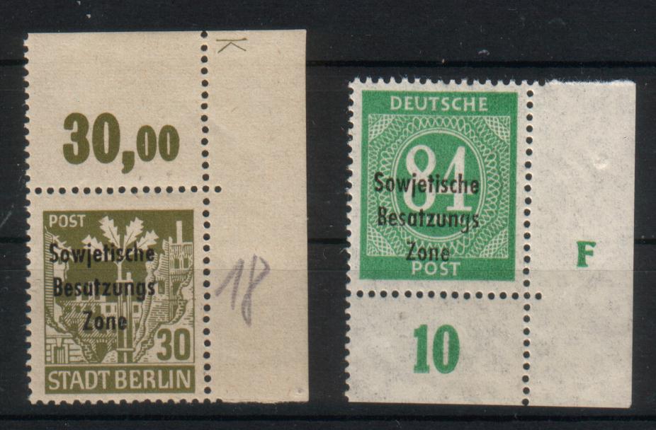 Auf der einen Marke nur "Zone Sowjetische", auf der anderen "Besatzungs Zone" - das ist dem senkrechten Aufdruck geschuldet!