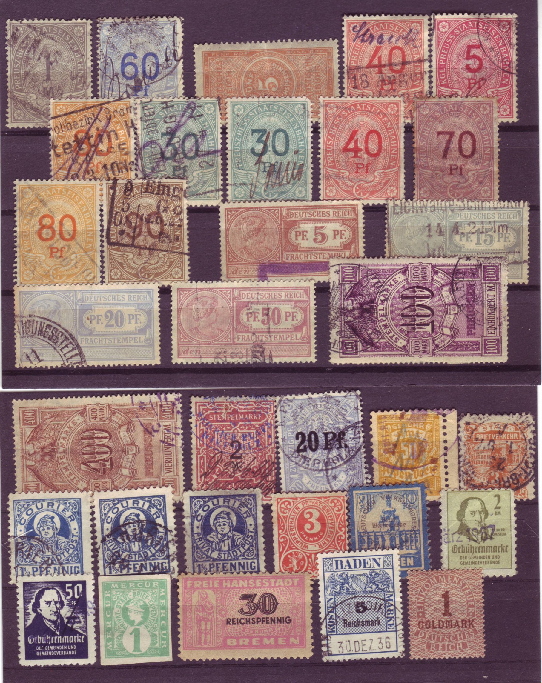 Ein paar Privatpostmarken sind dabei, der Rest sind Gebührenmarken mit einigen Eisenbahn.