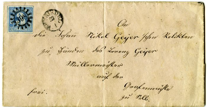 Ab dem 01.08.1850 wurden diese Stempel auf Briefen als Ortsstempel