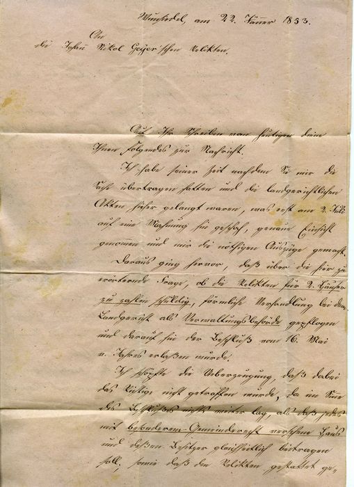 Das Jahr geht nicht hervor? Es sollte ein Brief vom 23.1.1851 sein, wenn ich mich nicht irre.
