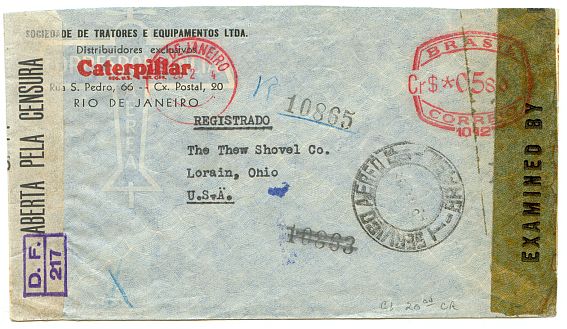 Hier zeig ich 2 Briefe aus Brasilien mit Freistempeln sowie ZENSUR.