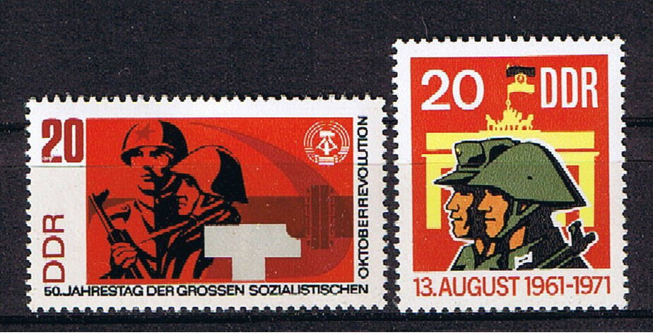 der vordere Soldat trägt einen NVA-Stahlhelm. Aber das Motiv sollte wohl gleichzeitig die Waffenbrüderschaft zwischen der UdSSR und der DDR darstellen.
