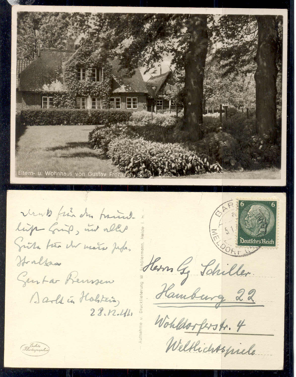Philatelie anders zu sammeln, beweisen diese Postkarten. Der Absender war Gustav Frenssen. Dieser Autor ist eher in Norddeutschland bekannt. Geschrieben hat er auf Ansichtskarten seines Eltern- und Wohnhauses. Das macht die Karte noch ein Stückchen interessanter.