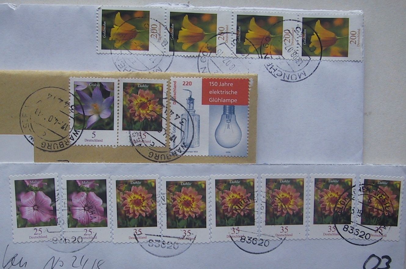 Dank der modernen Postentwertung kann man, wenn die Marken richtig aufgeklebt sind, sie ablösen und für die nächste Post, Porto sparen. :dankeschoen::D:D