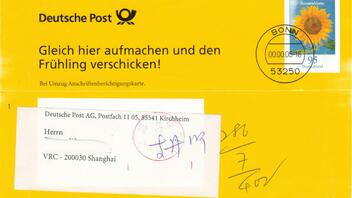 Werbeantwort in Shanghai abgesandt lt. Stempel 2005.06.29