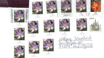 Heute in der Post ein Einschreiben mit Blumenmarken frankiert. Den Ausschnitt mit den Marken zeige ich hier.