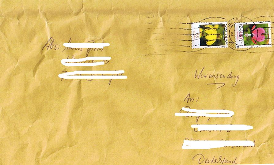 Leider hat der Postler von DHL Niederlande eine Aufkleber auf die Marken platziert.