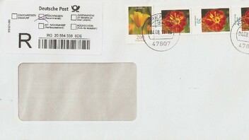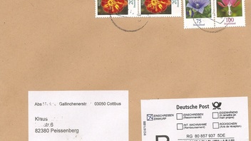 Heute möchte ich euch einen schönen Brief zeigen, von einem netten Sammlerfreund. Inflationär anmutend wurde hier der 5 Cent Wert Krokus verklebt.