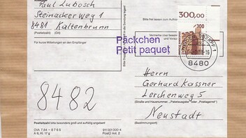 Der Beleg wurde linearcodiert "971148" entsprechend der PLZ 41179 sowie der Prüfziffer "8".