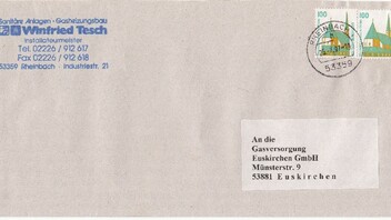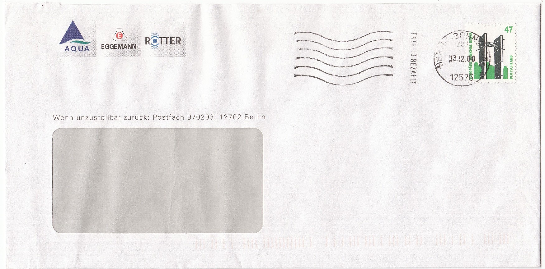 Hier eine Infopost-Sendung aus 12.96 aus 73650 WINTERBACH mit ENTGELT BEZAHLT sowie Welleneinsatz.