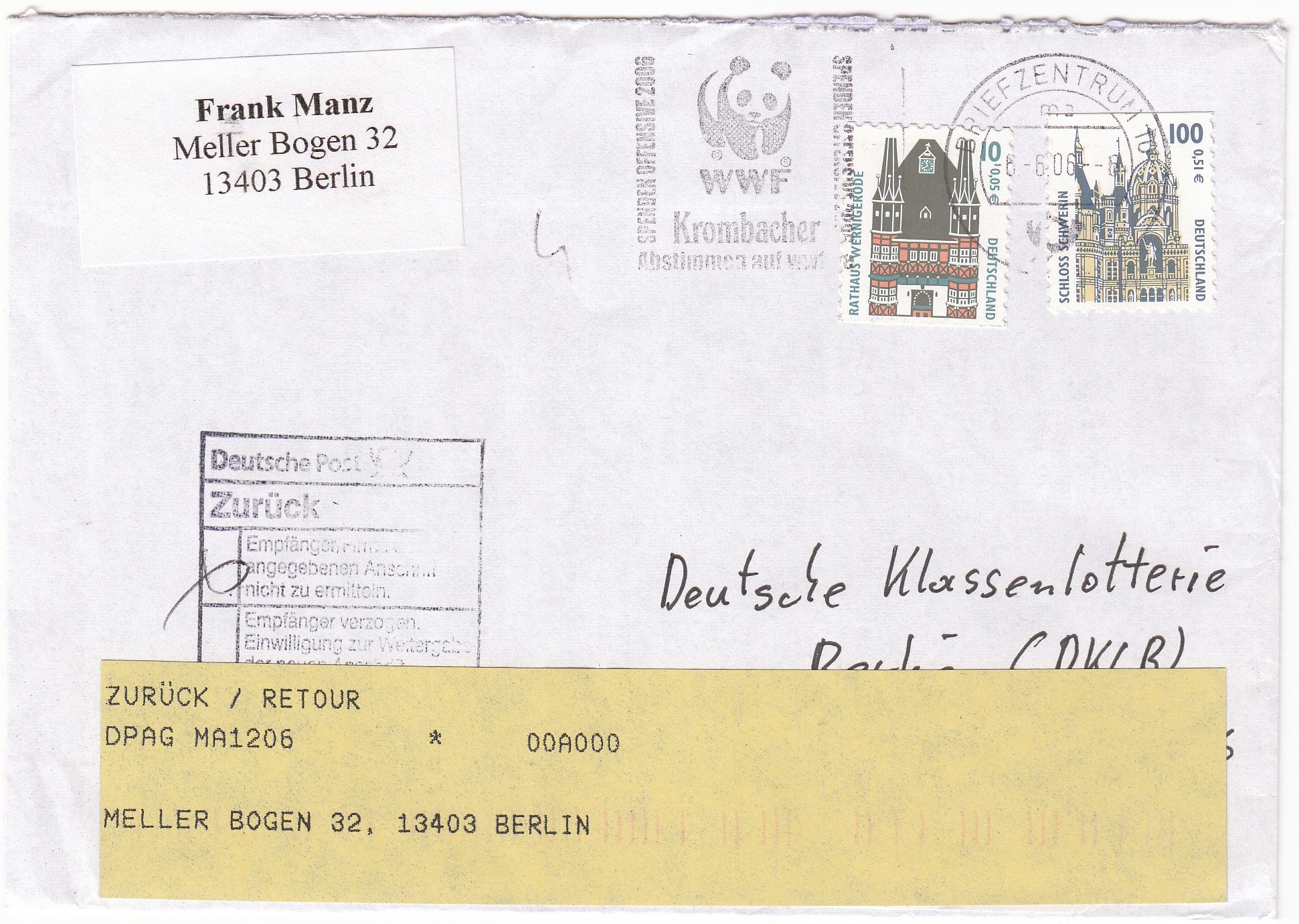 ...Auch beim Entgelt ist die Bestimmung nicht einfach: Entweder es war ein Standardbrief dann war er überfrankiert (1 DM zu viel) oder als Kompaktbrief war er unterfrankiert (10 Pfg. zu wenig)...