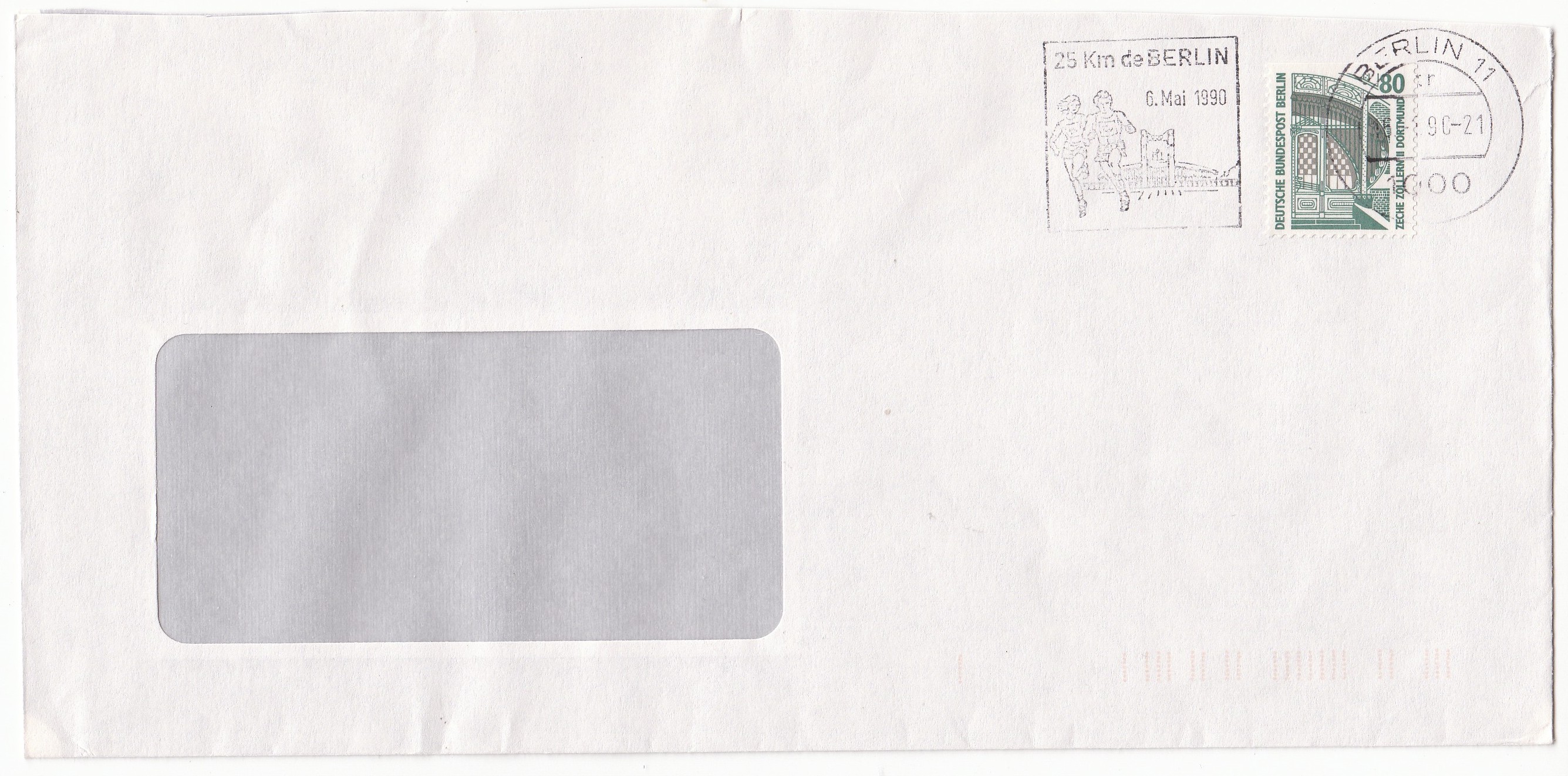 Standardbrief, Postgebühr 100 Pf, per Einschreiben, Postgebühr 350 Pf sowie Rückschein, Postgebühr 350 Pf, ergibt die Portostufe 800 Pf, hier portogerecht freigemacht als MeF mit einem Viererstreifen des 200 Pf Wertes.