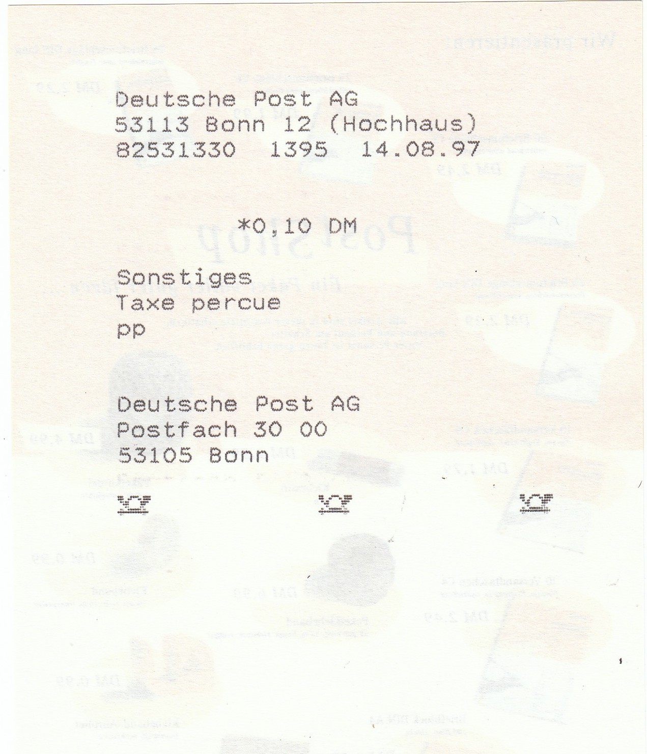 DerAnbieter hatte auch in diesem Falle die Fußnote in seinem Michel nicht gelesen und ging von einer Behandlungsgebühr von 700 Pf plus 150 Pf für die 1000 DM Wertangabe aus!