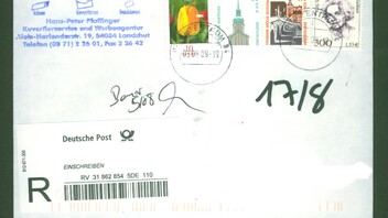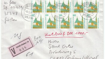 Zu 1039: Wer macht denn sowas. Ein Firma als Absender, die müssen ja kurz vor der Pleite gestanden haben, wenn sie ihre Arbeitszeit für solche Manipulationen verwendet haben. Den ganzen Aufwand für 80 Pf