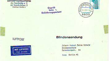 Als einzige Möglichkeit die Mi.Nr. 1448 als >Einzelfrankatur zu versenden, diese wäre als Blindensendung, per Luftpost, denn die Blindensendung ist kostenlos und es muss nur noch die Lufpost bez. die zu der Zeit 0,05 DM betragen hat.