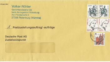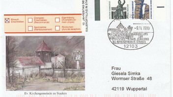 Der am 15.04.1993 erschienene 200 Pf-Wert SWK ist auf Bedarfsbelegen mit vierstelliger PLZ gar nicht so häufig zu finden, wurden doch die PLZ bereits am 01.07.1993 vom vierstelligen auf das fünfstellige System umgestellt.